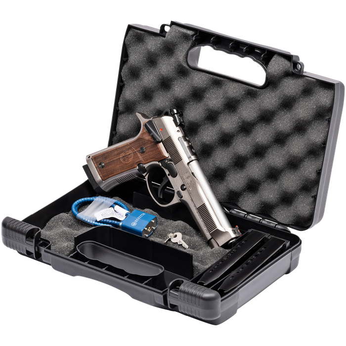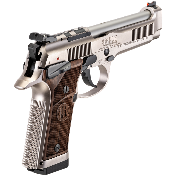 Featuring a combat crown stainless steel barrel for improved accuracy and upgraded thin Hogue walnut grips, the 92X Performance Defensive Classic delivers a refined, classic aesthetic with modern precision. It retains top-tier features like a red-dot optic-ready slide, X-Treme S Trigger, and fiber optic front sight with an adjustable rear sight, ensuring you stay ahead of the competition.