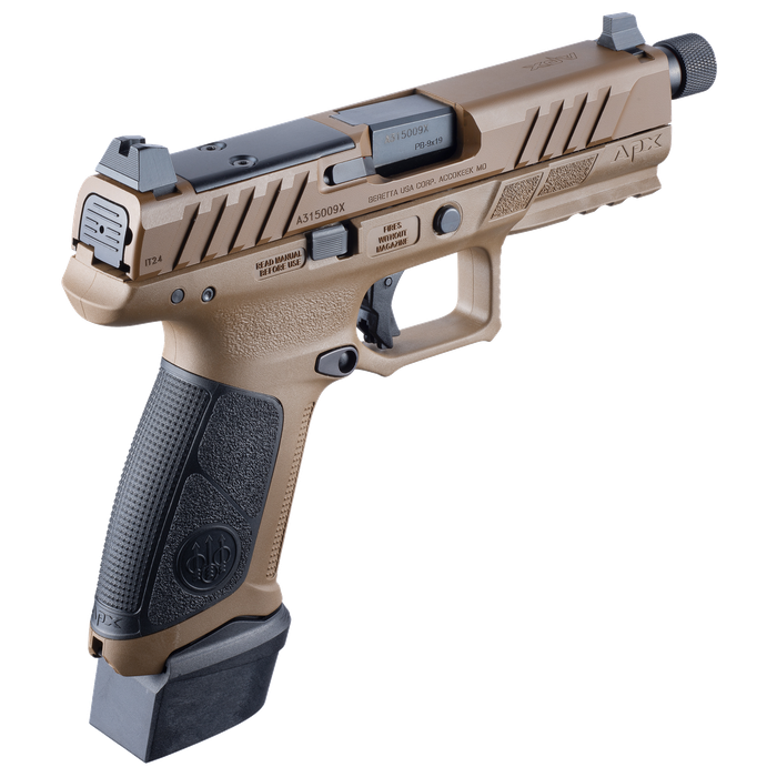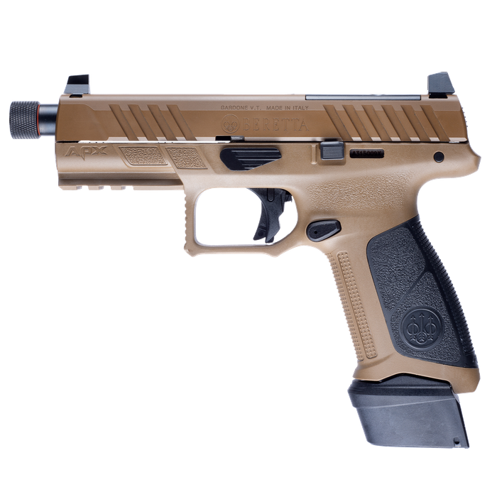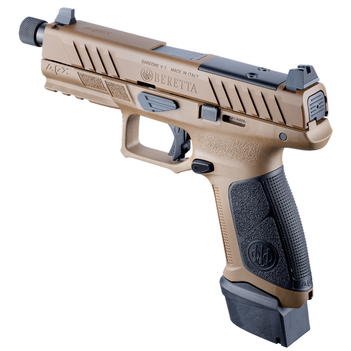 Building off the success of the APX series, Beretta is excited to unveil the latest innovation and introduces the APX A1 Tactical – now available in FDE. Cream of the crop of the APX series, it was developed in collaboration with special forces units to offer peak performance and unmatched durability. Comes packed with premium features such as 1/2β – 28 threaded barrel, blacked out suppressor height sights, red dot optic-ready, and three 21 rd. extended magazines. Whether youβre plinking, training, competing, or prepping for home defense, the APX A1 Tactical is your premier sidearm of choice