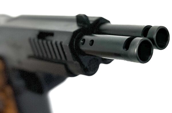 The AF2011 DUELLER PRISMATIC pistol can be fired with either a single trigger (right or left, which the shooter can change for right-handed and left-handed operations) and two independent triggers, or two triggers that will be permanently attached to each other, and one or two triggers to choose from.