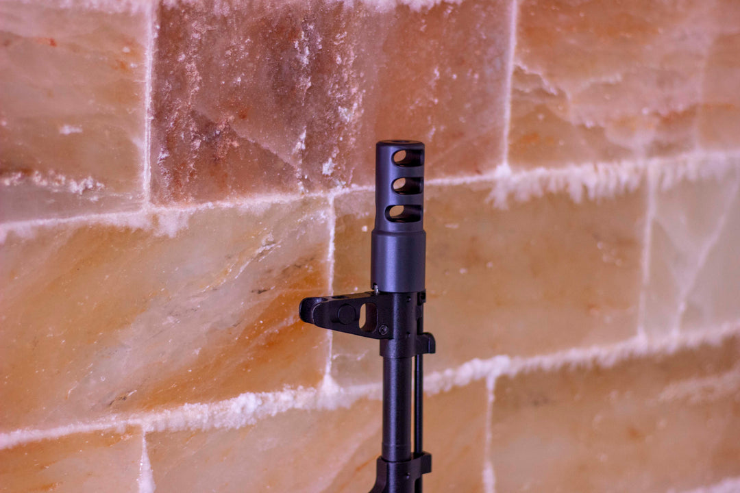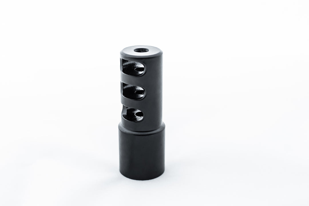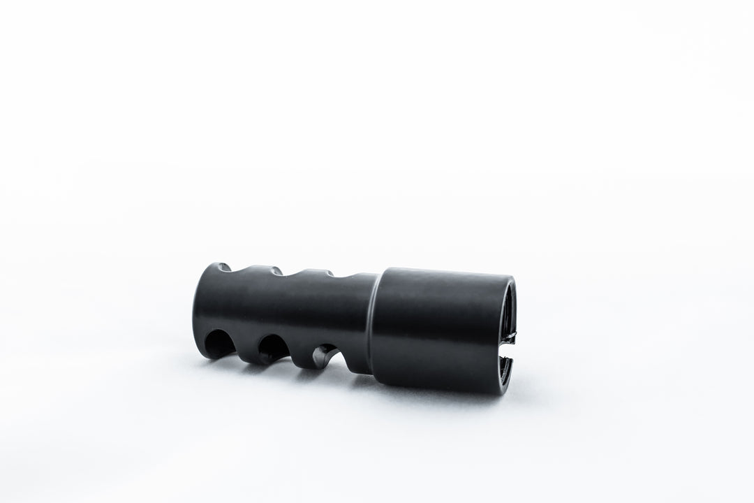 Muzzle break for .223 Rem, 5.45, and 7.62X39 mm rifled firearm with M24x1.5RH external thread.