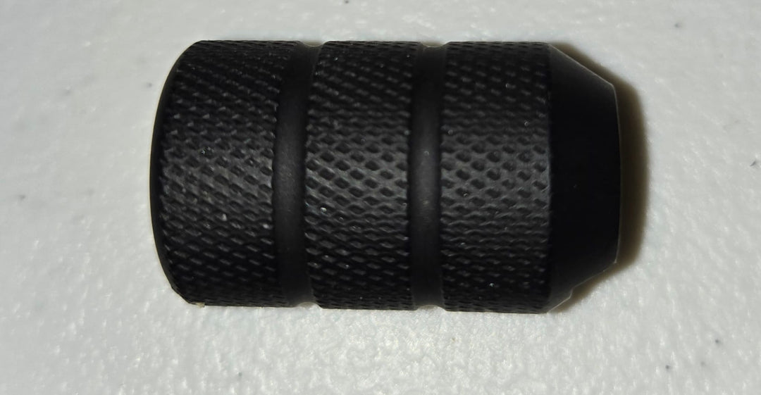 Most knobs do fly away when shooting, some even after using Loctite. The goal was to use only ONE existing set screw without welding it forever.
