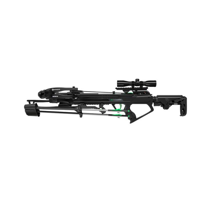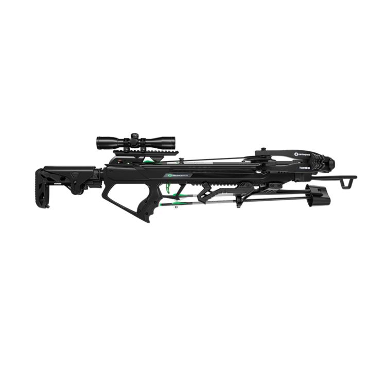 - Full Accessory Package 4×32 illuminated scope, durable cocking sled, rail lube, and (3) 20″ .003 arrows