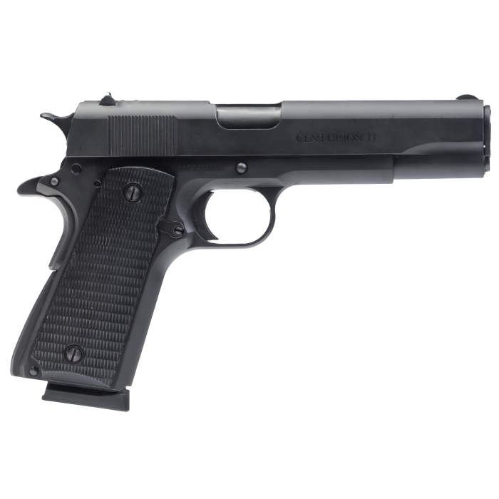 Welcome to the new era of classic firearms with the Centurion 11 by Century Arms. Imported from Turkey, the Centurion 11 embodies the timeless design of the iconic GI model 1911, meticulously crafted to honor its historical roots without compromising affordability. Chambered in .45ACP with an 8+1 capacity, the Centurion 11 boasts dimensions ideal for both functionality and nostalgia. Standing at 8.6 inches long, 1.37 inches wide, and 5.31 inches tall, it features a 5.01-inch barrel and weighs 35.5 ounces when unloaded. This firearm is equipped with fixed iron sights, a spur hammer, and a GI style grip safety, delivering a crisp single action trigger experience. Each Centurion 11 is delivered in a durable hard case, complete with essential accessories including one magazine, bore brush, cleaning rod, and bore mop. Priced competitively
