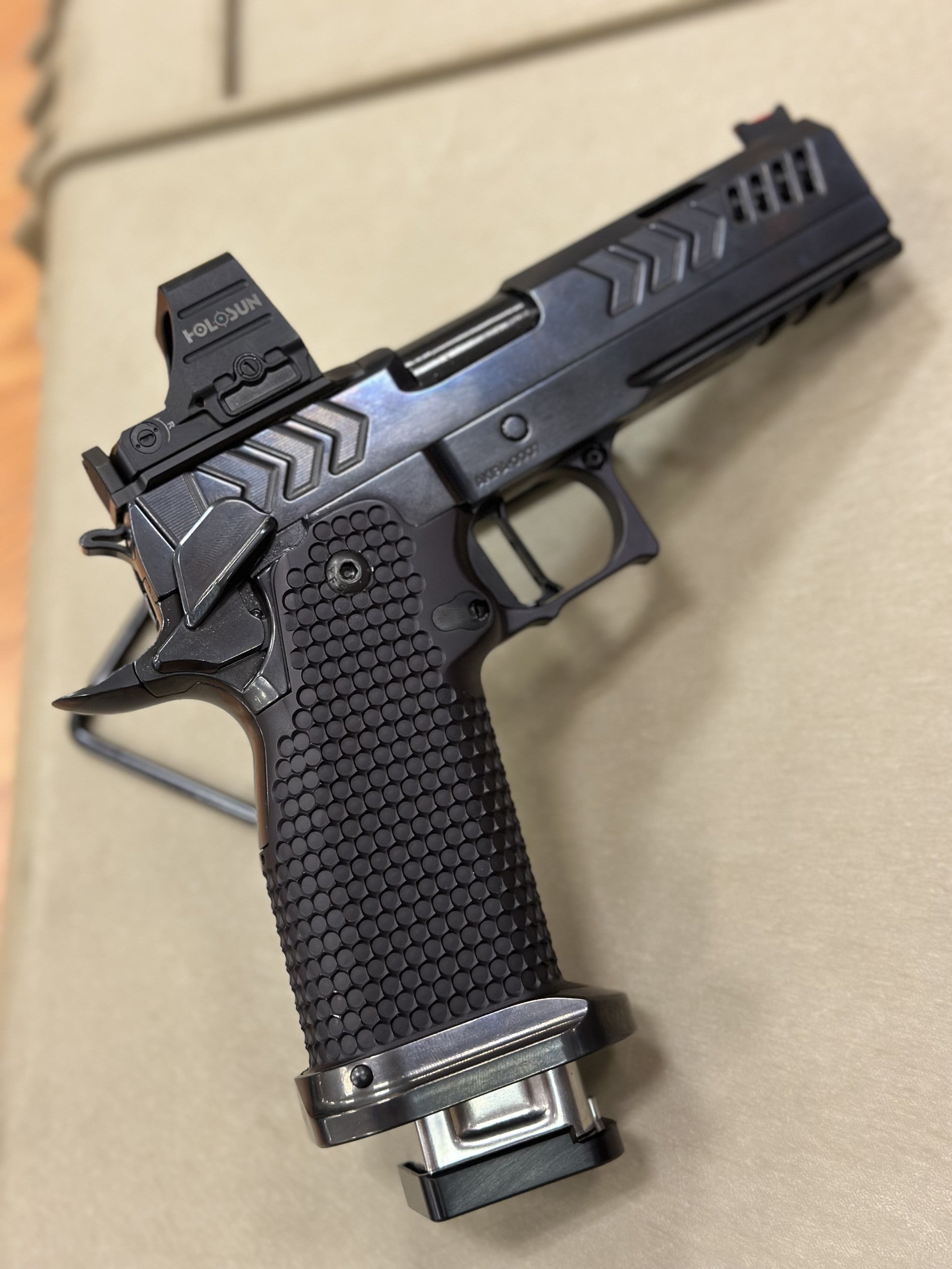 - Safeties: High-grip shielded IDPA ambidextrous safety