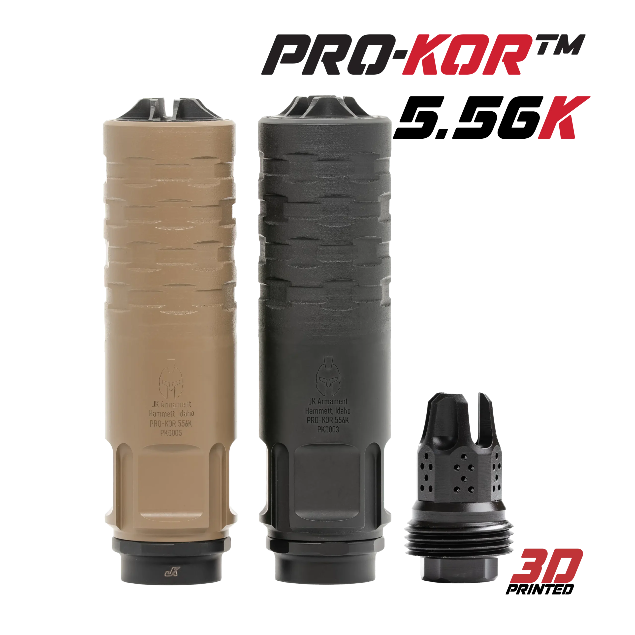 Built using advanced 3D printed construction from 17-4 stainless steel & Haynes 282, this 5.56mm suppressor is designed for shooters who run their gear hard. The optimized internal geometry delivers efficient gas flow, low flash signature, and reduced back pressure while maintaining superior sound performance. HUB 1.375 24 compatibility, a user-serviceable end cap, and the included War Eagle muzzle device make the PRO-KOR™ 556K adaptable, durable, and ready for sustained hard use on SBRs and full-length carbines alike.