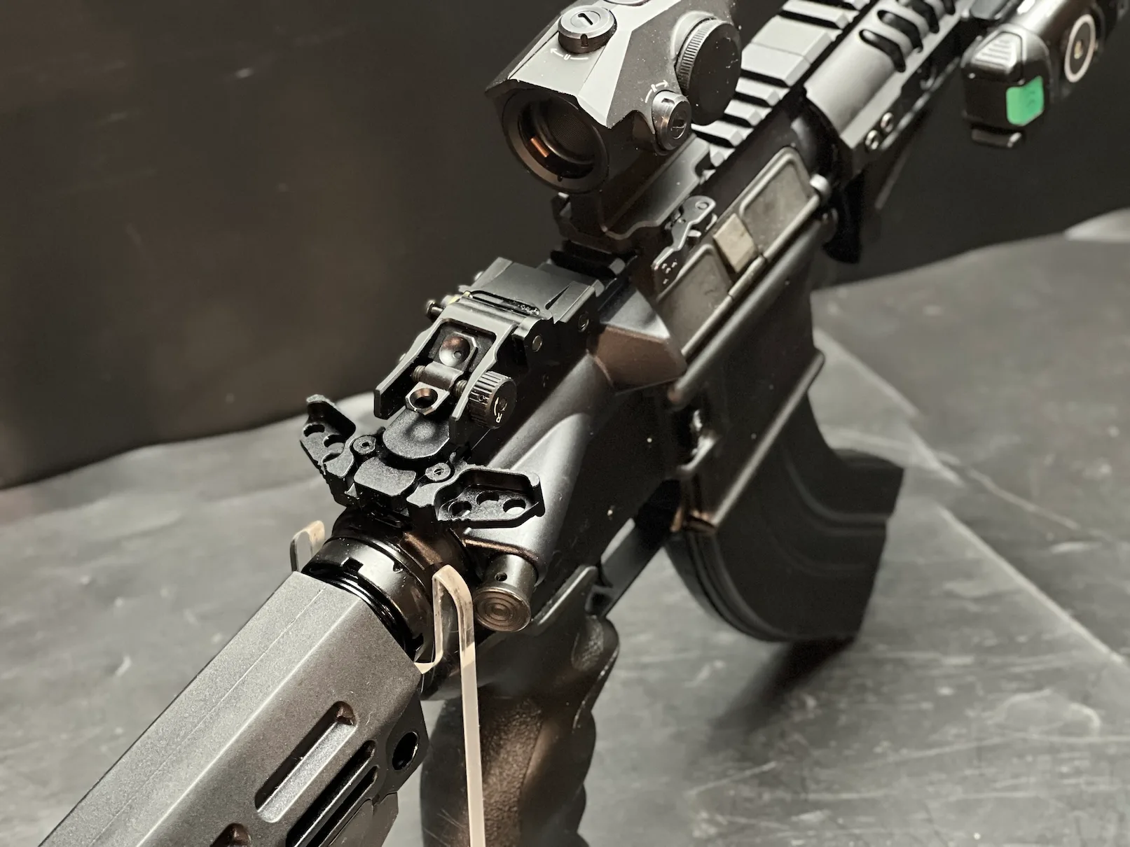 Flip-up Iron Sights: Reliable backup sights for versatile aiming options.