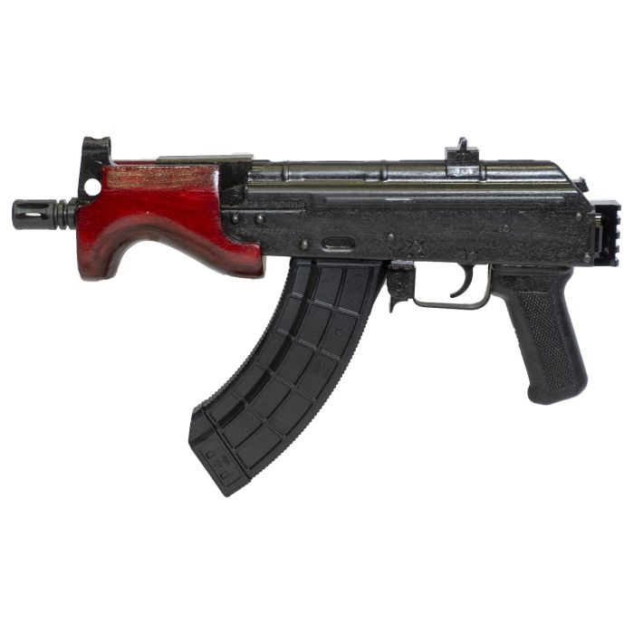 Built in Romania, the MICRO DRACO Pistol is chambered in 7.62x39mm, features a 6.25” barrel. With Russian Red wood handguard and includes one US Palm 30-round magazine. This compact package comes with an Enhanced Trigger Group, Bird Cage Style muzzle device muzzle device, non-adjustable style AK rear Sight and adjustable front post, and Premium Handguards. Coming in at an unloaded weight of 4.85lbs, the MICRO DRACO is the smallest configuration offered in our AK platform.