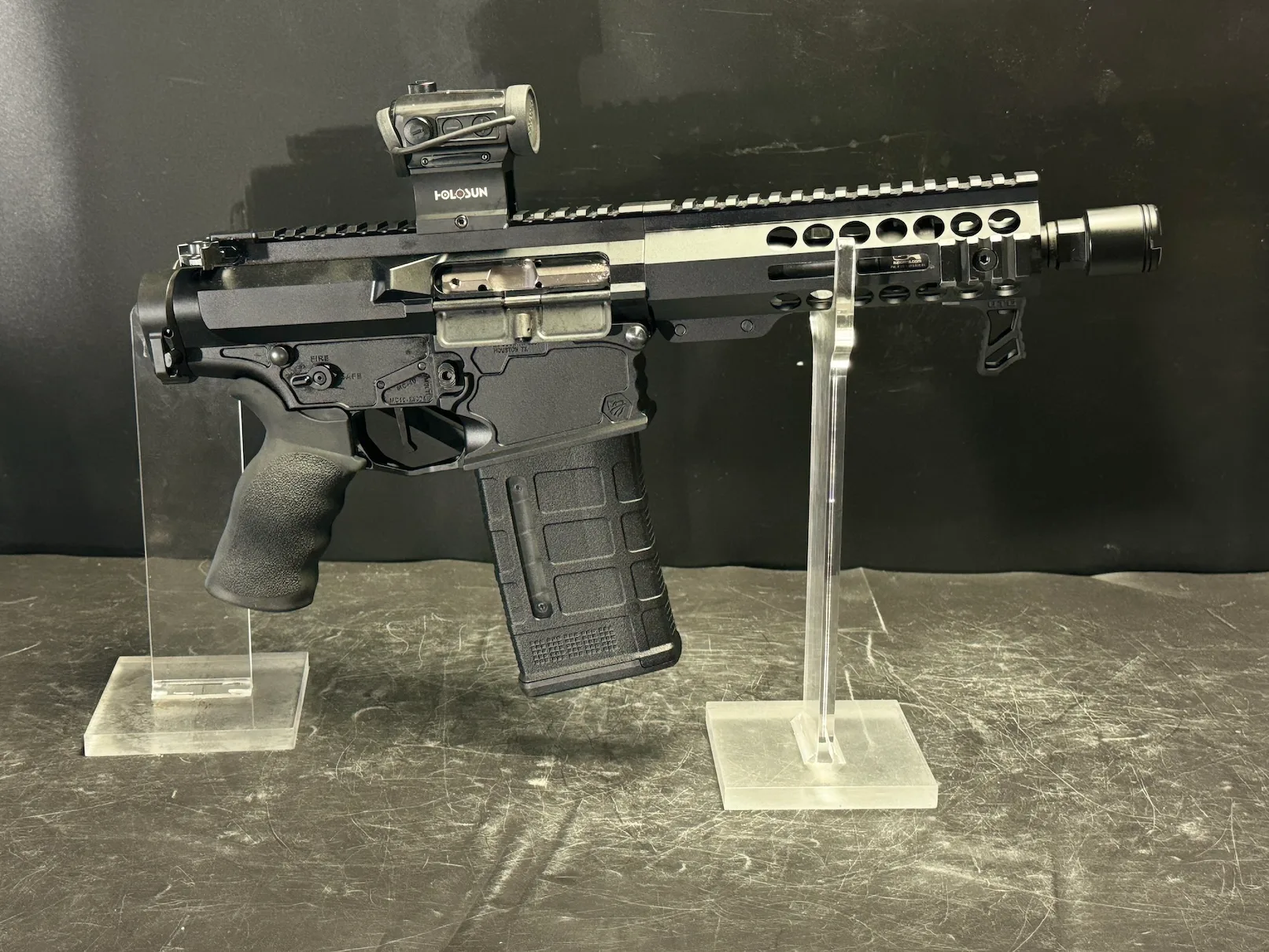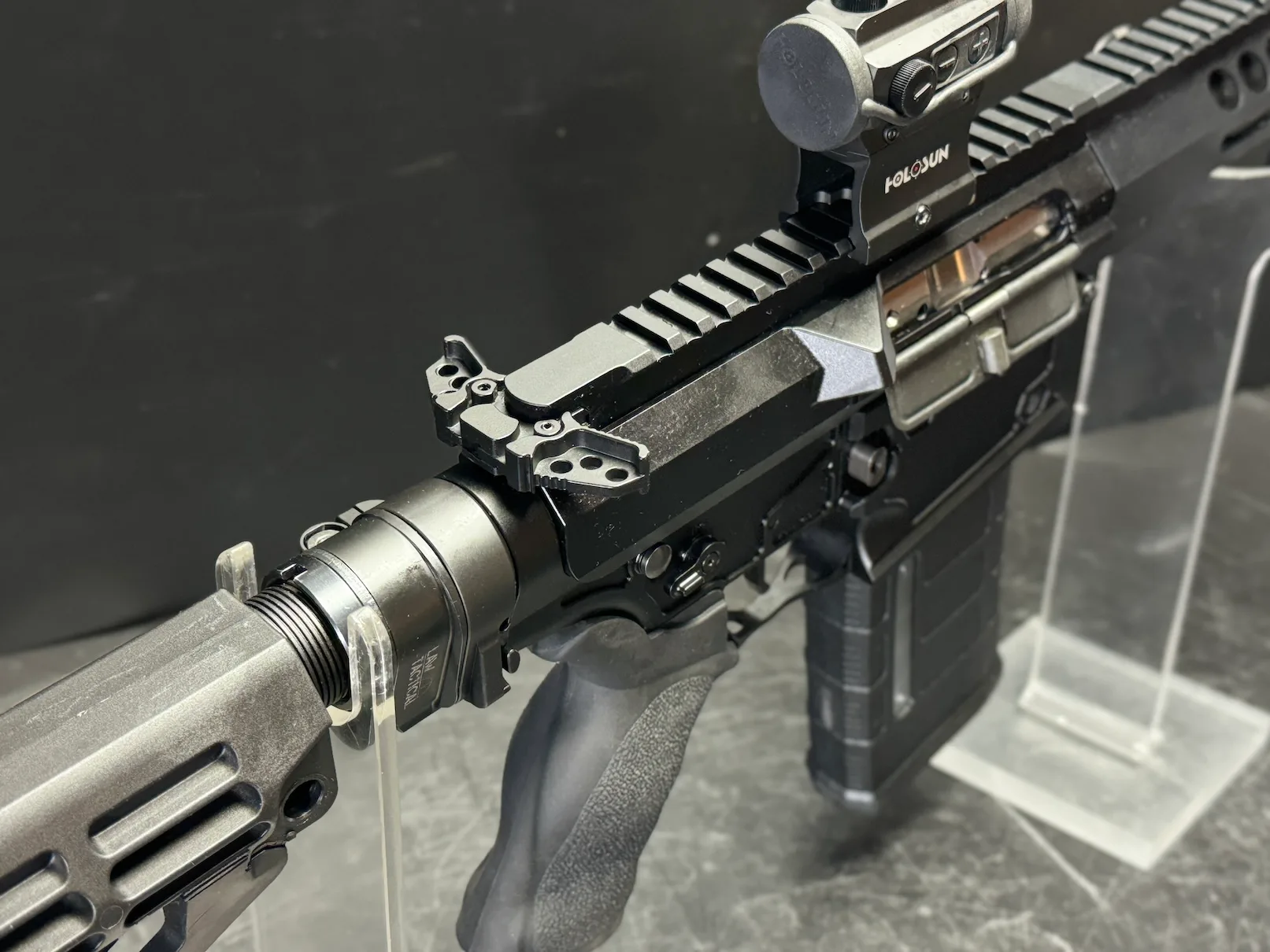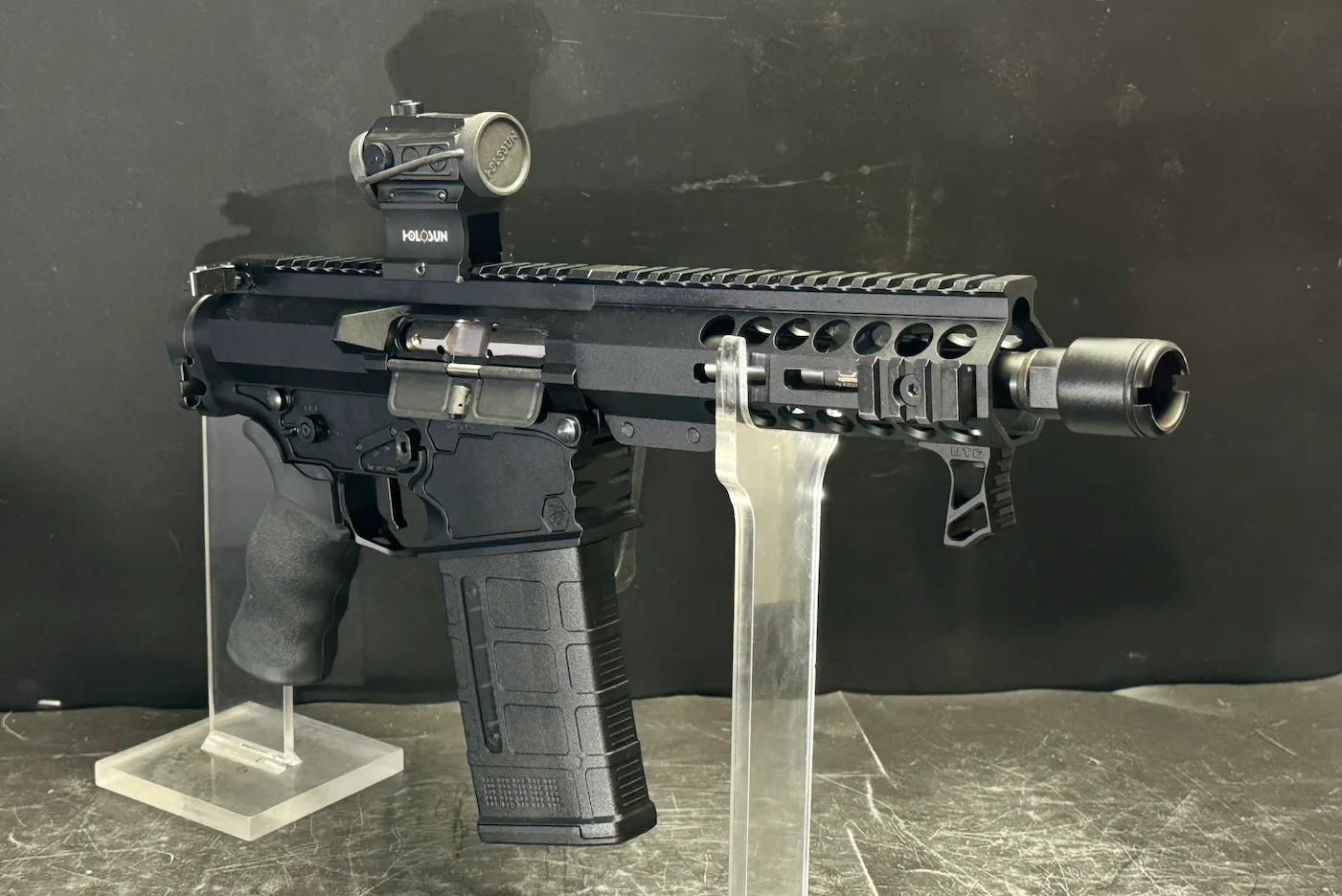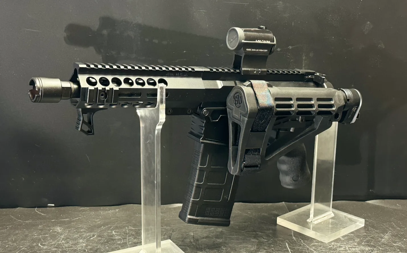 Experience precision and power in a compact design with the Micro Folding Noisy Cricket .308 AR-10. Engineered for top performance, this AR-10 features a 7.75β³ .308 WINCHESTER barrel with a 1/10 twist and a durable black nitride finish, ensuring reliability with every shot. The Franklin Armory BFS III AR S-1 Binary Trigger offers a unique 3-position system, allowing you to fire one round on pull and one on release, enhancing your shooting speed and accuracy. Equipped with a Superlative Arms Bleed Off Adjustable Gas Block, an SBA 4 Pistol Brace, and a Law Tactical Folding Adapter, this firearm is built for ease of use and maximum comfort. The Holosun Technologies 403C Red Dot Sight with solar power ensures youβre always ready, day or night.