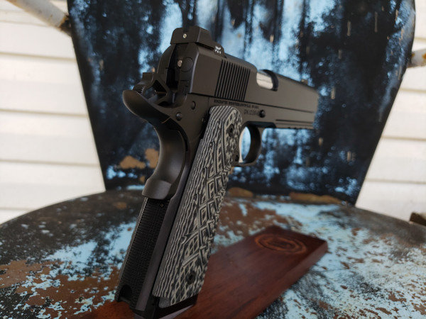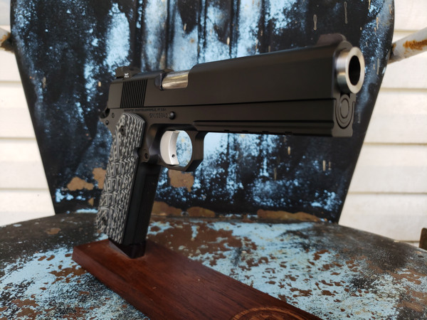 The Model 2 custom 1911 has all of the same great features of the Model 1, but also includes a full length rail, full length dust cover, and a monolithic slide. The added weight in the front of this custom 1911 makes the already soft shooting .50GI round even softer. This pistol also features a squared off trigger guard as well as a long list of standard features: