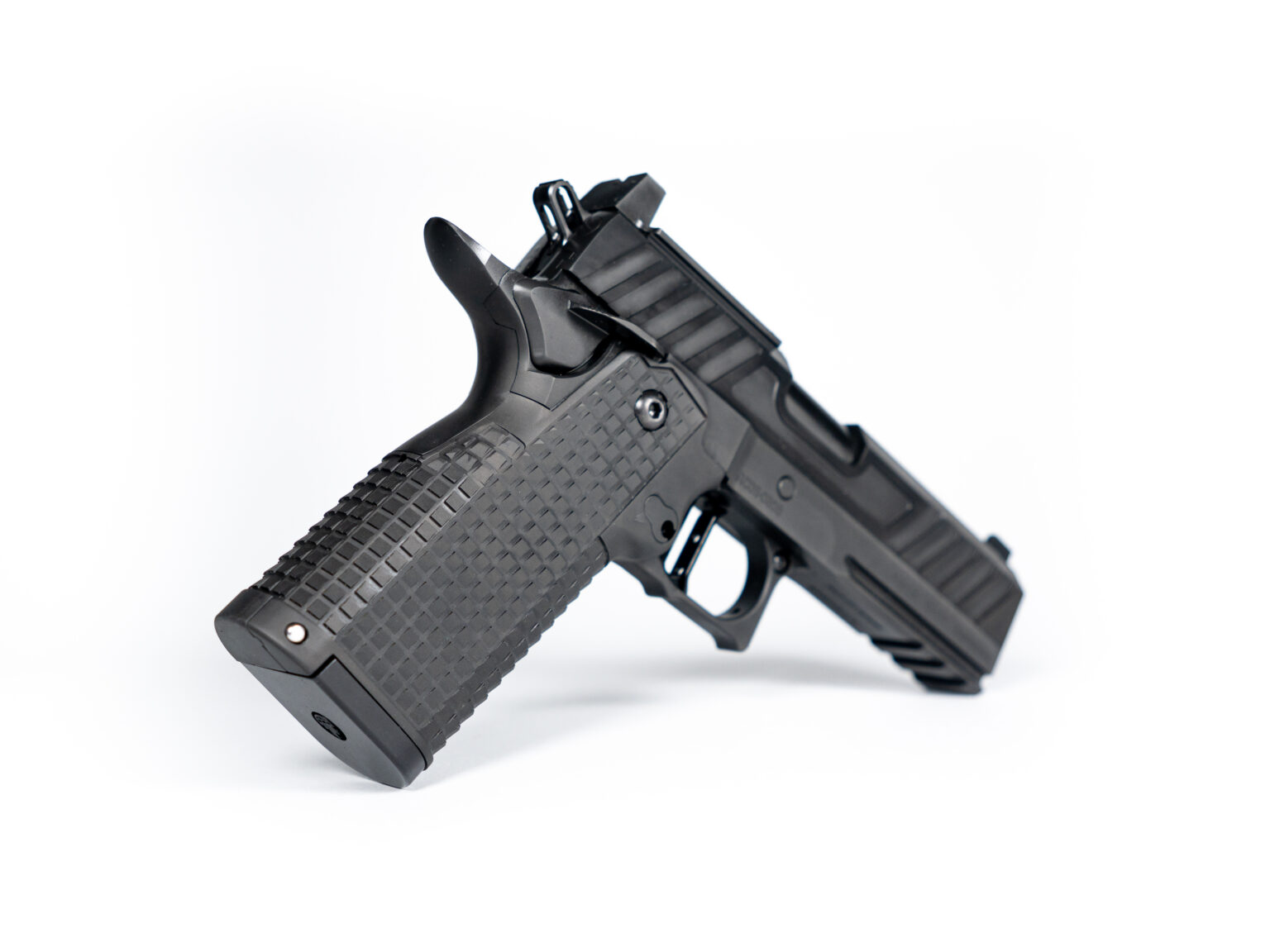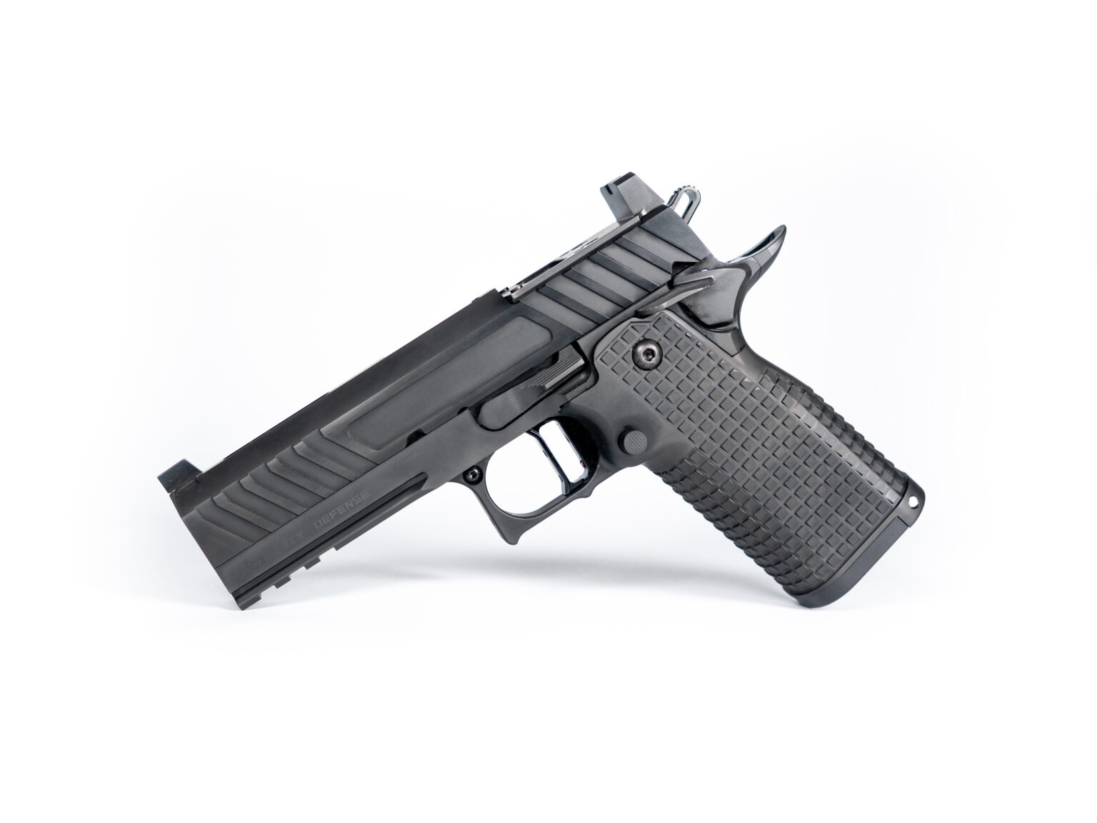 - Slide: Flat-top design with aggressive front and rear serrations.