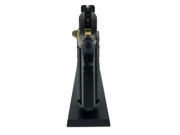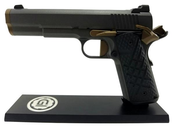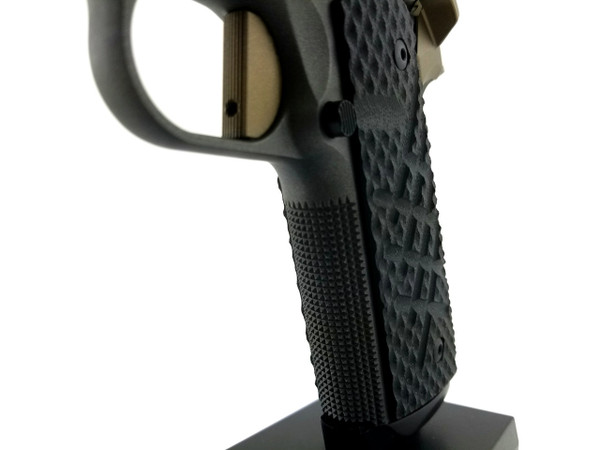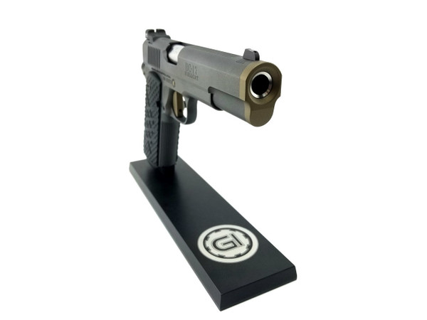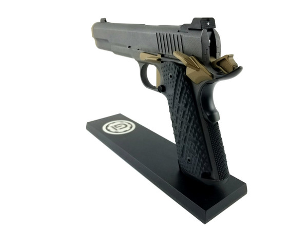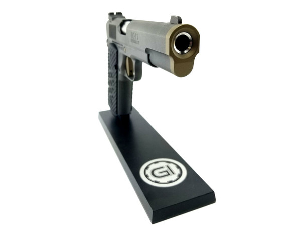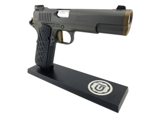 The Hellcat has been designed from the ground up to be the next generation of Guncrafter Industries fighting 1911’s. The name centers on the new BattleCrown™ which consists of an extremely heavy duty barrel bushing that precisely follows the outside contour of the slide, with an angled bottom, for a very distinctive and clean look. The front opening of the BattleCrown™ has a large and extra deep flare that is expertly blended to the countersunk, crowned barrel. Functionally, this oversized flange protects the muzzle crown to an unprecedented level while the front is nicely beveled without any sharp edges, for easy holster insertion.