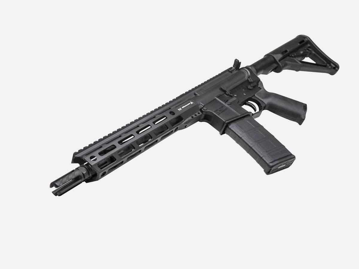 Also available as SBR or pistol. Both have an 11.5-inch match-grade stainless steel barrel with a carbine-length gas system, along with a 10-inch handguard. The SBR has a Magpul MOE stock, and the pistol has an SB Tactical SBA3 pistol brace.