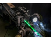 The WLAD Weapon Laser Aiming Device is a CLASS 1 laser consisting of a green visible aiming laser, a near-infrared (near-IR) aiming laser, IR illuminator and 300 lm LED illuminator. The function of the WLAD is to provide an operator with highly collimated aiming lasers for precision aiming and targeting visible in low light conditions and in conjunction with night vision devices for night time applications. The focusable near-IR Illuminator floods the area of interest with near-infrared light only visible when used with night vision devices.
